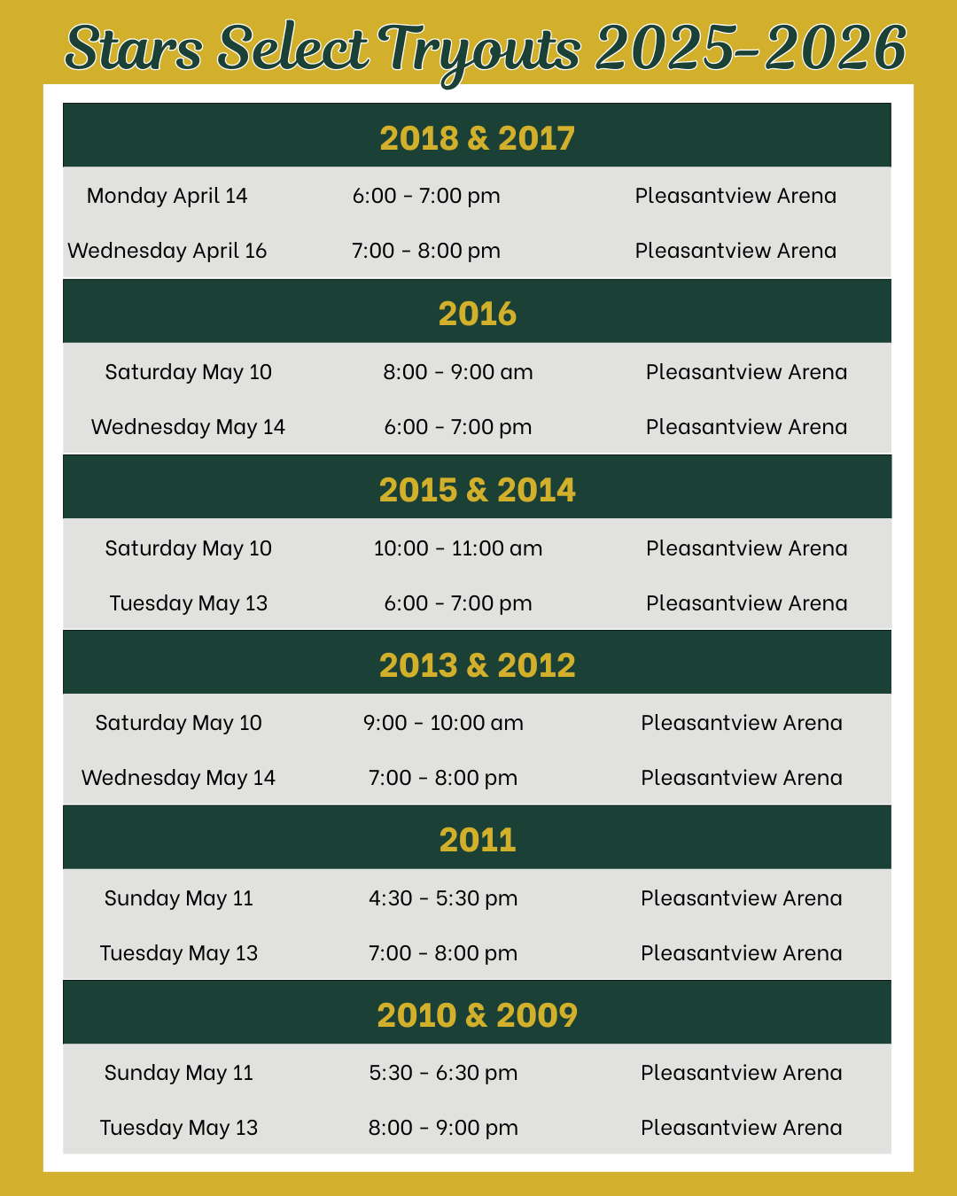 Select Tryout Schedule Released